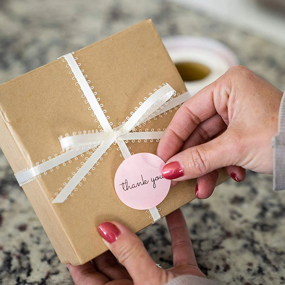 100-500pcs Round Thank You Sticker Envelope Seal Scrapbook Sticker Pink Heart Cute Round Sticker Stationery Label Stickers